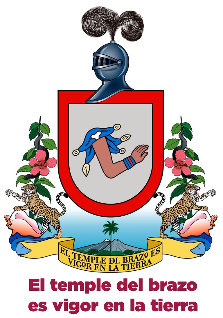 La frase “El temple del brazo es vigor en la tierra”, presente en el escudo estatal, se traduce visualmente en el logotipo como una síntesis del esfuerzo humano (brazo/mano) con el poder natural del territorio (volcanes). Esta unión representa el equilibrio entre el trabajo dedicado del artesano y la fuerza creadora de la naturaleza.
